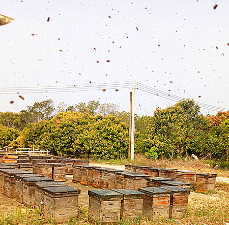 辛勤的蜜蜂们正在为我们甜蜜的生活忙碌地采集搬运并酝酿花蜜!
